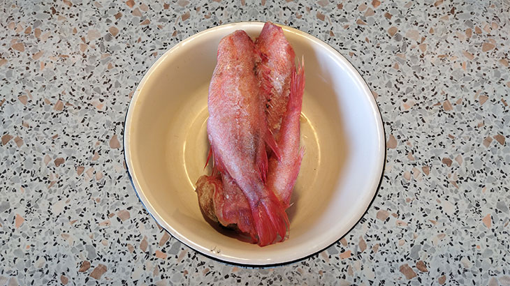 Аккуратно ножницами отрежьте у рыбы все жесткие плавники, очистите от чешуи, выньте внутренности и промойте филе под прохладной водой.