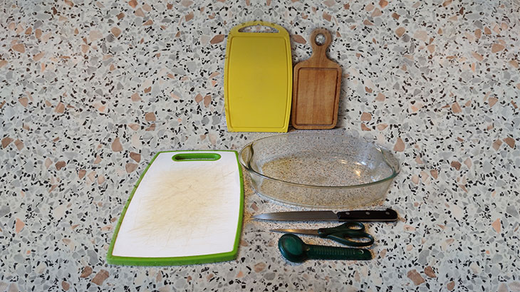 У рыбы должна быть собственная разделочная доска (одна и та же для мяса, рыбы, овощей и хлеба – негигиенично). Разделочную доску можно купить в любом хозяйственном магазине. Выбирайте недорогую пластмассовую или стеклянную толщиной не менее 0,5 см и размером не менее 36х24 см. Такую легко вымыть, и она подойдёт для рыбы любого размера.