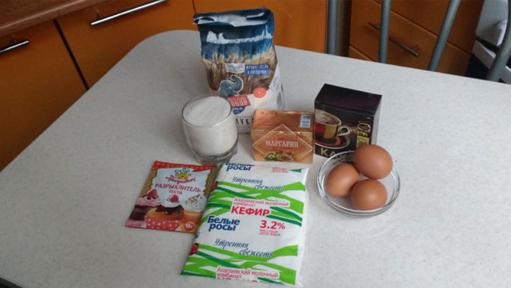 Итак, сейчас рассмотрим подробнее все продукты, находящиеся на столе, после чего я буду готов показать вам пошаговый рецепт пирога Зебра на кефире.