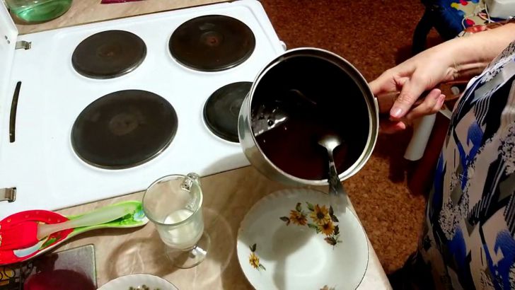 Как закипит, добавляем полстакана сахара и размешиваем до его растворения, затем снимаем с огня и даем остыть.