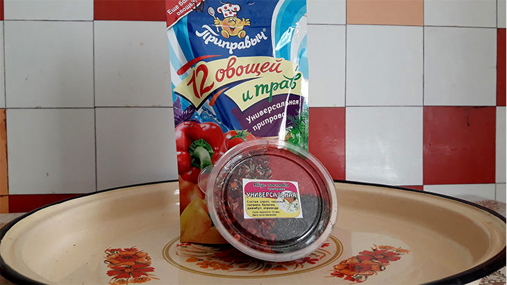 В данном случае я использую универсальную приправу в состав которой входят сушёные: