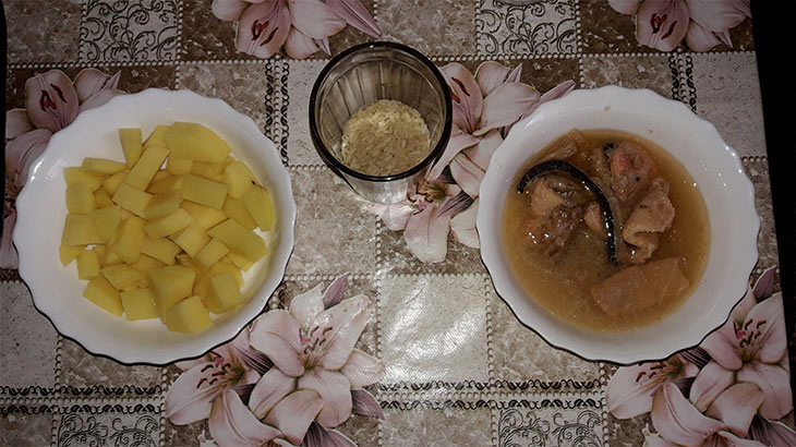 Сегодня я покажу вам, как можно сварить рыбный суп из консервов без этих манипуляций. Для полного приготовления этого блюда нам понадобится ровно 42 минуты, из которых: 16 минут на закипание воды, 10 – варка картофеля и риса и 16 минут понадобится непосредственно на готовку всех остальных компонентов.
